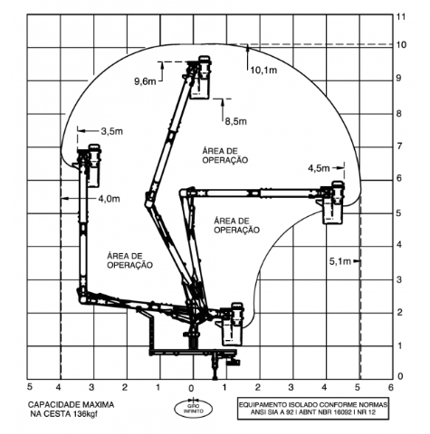 | Altura de operação | 10,10 m |